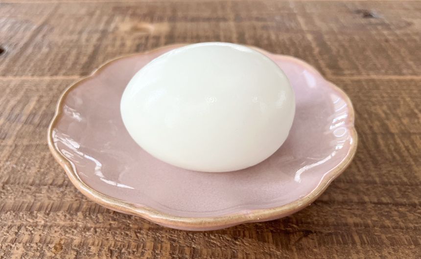今回はLサイズの冷蔵庫から出したばかりの卵を使いました。小さいサイズの卵や、常温の卵であれば加熱時間は短縮できます。写真は、15分置いてから取り出した卵です。熱いので取り出す際は注意してくださいね。