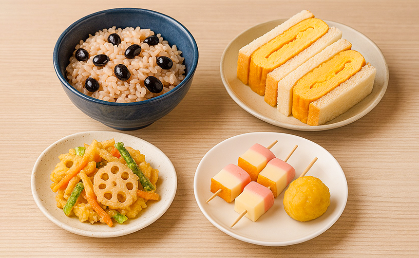 おせちは保存性を考えて味付けがしっかりしているものが多く、冷めてもおいしいという特徴があります。これはまさに「お弁当向き」!さらに、いろどりや形も美しく、詰めるだけで華やかさがアップします。