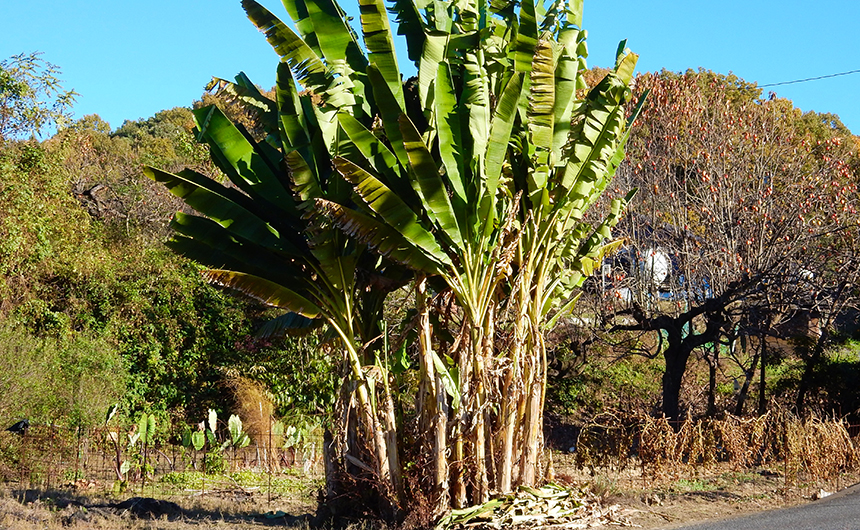 バナナの木の幹のように見える部分は、実は「偽茎」といって葉がいくつも重なって形成されたものなのだとか。