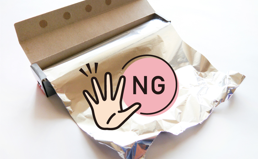 ラップも容器も、電子レンジでの加熱が可能なものかどう製品の記載を確認してから使いましょう。特に、ラップは耐熱温度が140℃以上のものを使ってください。また、アルミホイルは発火するので絶対に使わないでください。