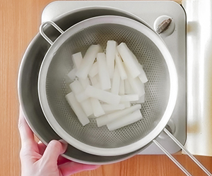3鍋に湯を沸かして長芋を加え、沸騰してから1分ほどゆでてザルにあげてよく水けをとる。