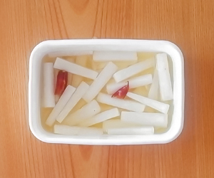 42を密閉容器に入れて3をひたし、粗熱が取れたら冷蔵庫で1時間ほど冷やす。