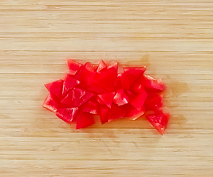 1パプリカのワタや種を取り、小さめの乱切りにする。