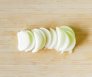 1豚バラ肉は一口大に切る。玉ねぎはくし形に、さやいんげんは3cm幅に切る。