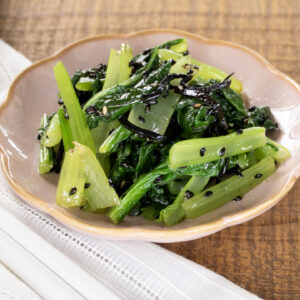 4醤油とみりんを加え、和えながら炒め、最後に塩こしょうで味をととのえる。