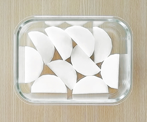 1大根は皮をむき、2cm幅の半月切りにする。レンジ対応の耐熱容器に並べ、水を50mL(分量外)注ぎ入れ、ふんわりとラップをかけて、電子レンジ600Wで5分加熱する。