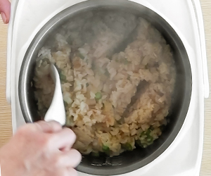 4炊飯器に米を入れ、Aを加えて混ぜ、3を上にのせて炊く。(炊飯器に早炊きモードがあれば早炊きがおすすめです。)