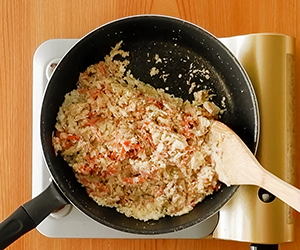 4Aを加え、全体を混ぜながら、弱火で10分ほどじっくり煮る。