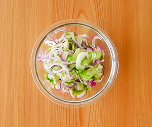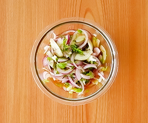 酢をひと煮立ちさせることで、酸味がまろやかにしあがります。セロリの香りと紫玉ねぎの甘みをいかした軽やかな浅づけで、食卓の口直しにもぴったりのさわやかな一品です。※漬け込み時間は調理時間から除いています。