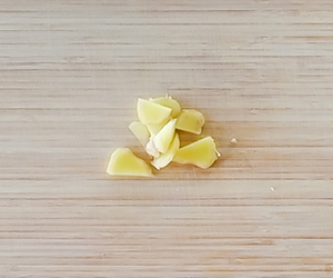 1しょうがは皮つきのまま、薄切りにし、にんにくはつぶす。