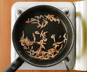3桜えびは小さなフライパンで乾煎りする。