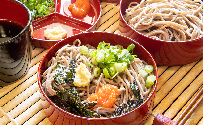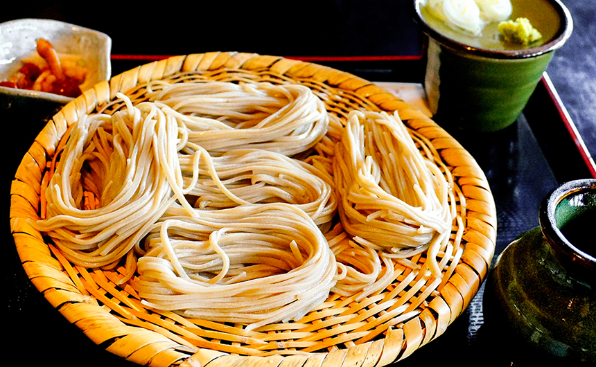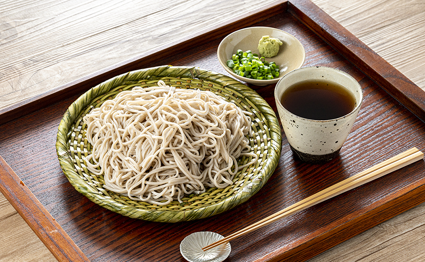 茶色で小粒の挽きぐるみのそば粉と水質の良い戸隠の水でつくられた戸隠そばは、香り高くのど越しも滑らか。薬味には辛味大根が添えられ、天ぷらには地元で採れるワラビやコゴミなどの山菜が豊富に使われています。