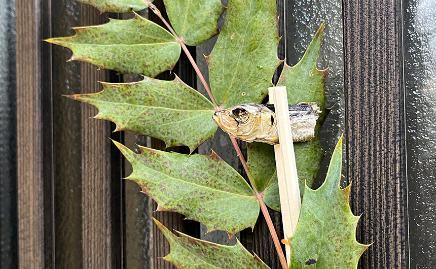 習慣:いわしを焼いた時の煙と匂いで鬼を追い払ったり、関西地方を中心に柊の枝と組み合わせて「柊鰯(ひいらぎいわし)」玄関に飾って魔除けにしたりします。