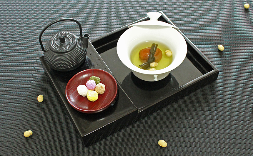 意味:梅干し・昆布・豆を入れたお茶で、梅=健康、昆布=喜び、豆=魔除けとそれぞれ願いが込められています。
